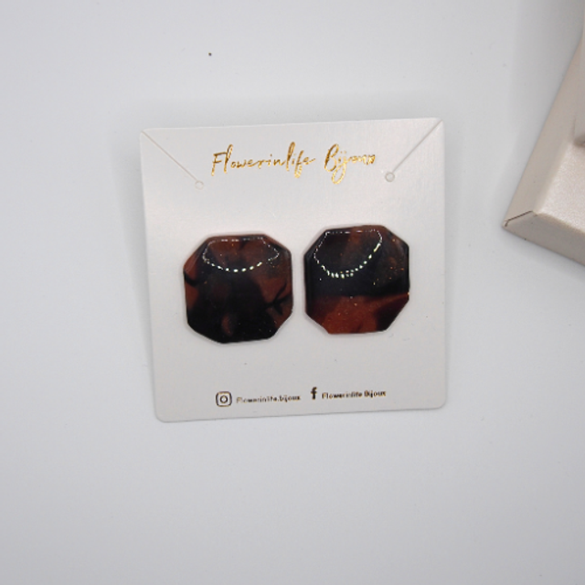 Ces bijoux uniques sont conçus pour celles qui aiment allier l'élégance classique à une touche de modernité. Parfaites pour rehausser n'importe quelle tenue. La forme carrée et le motif intemporel écaille de tortue offrent un style distinctif et très actuel. Un design à la fois classique et tendance qui attire le regard.